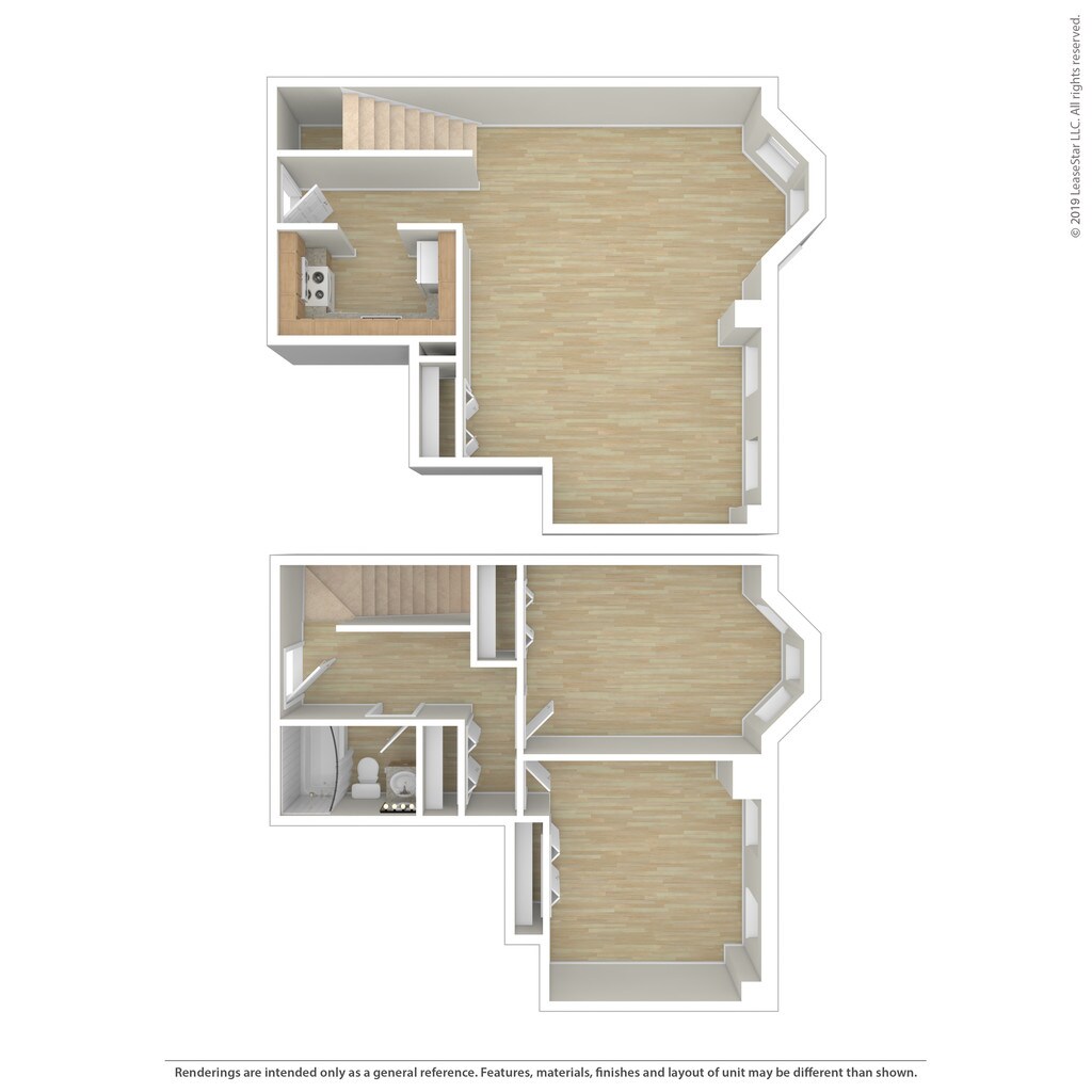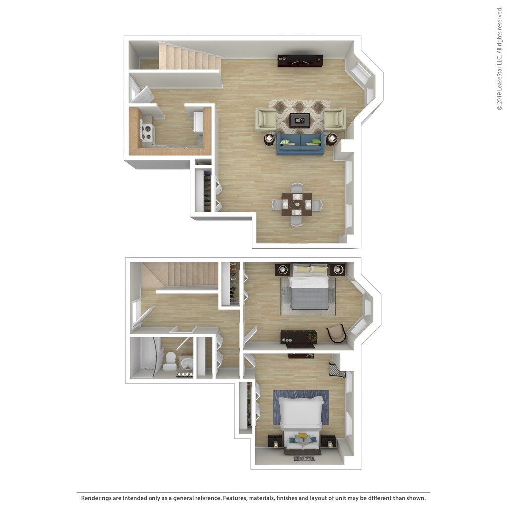 One Bedroom/ One Bath Duplex - Floorplan 3 2 Bedrooms