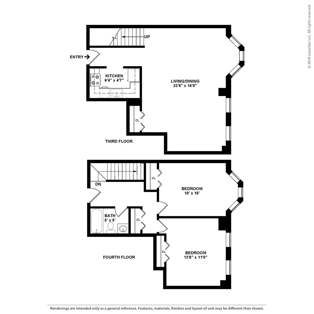 One Bedroom/ One Bath Duplex - Floorplan 2 ![]()