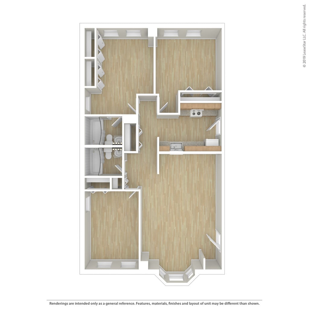 Three Bedroom/ Two Bath Flat - Floorplan 3 Three Bedroom/ Two Bath Duplex