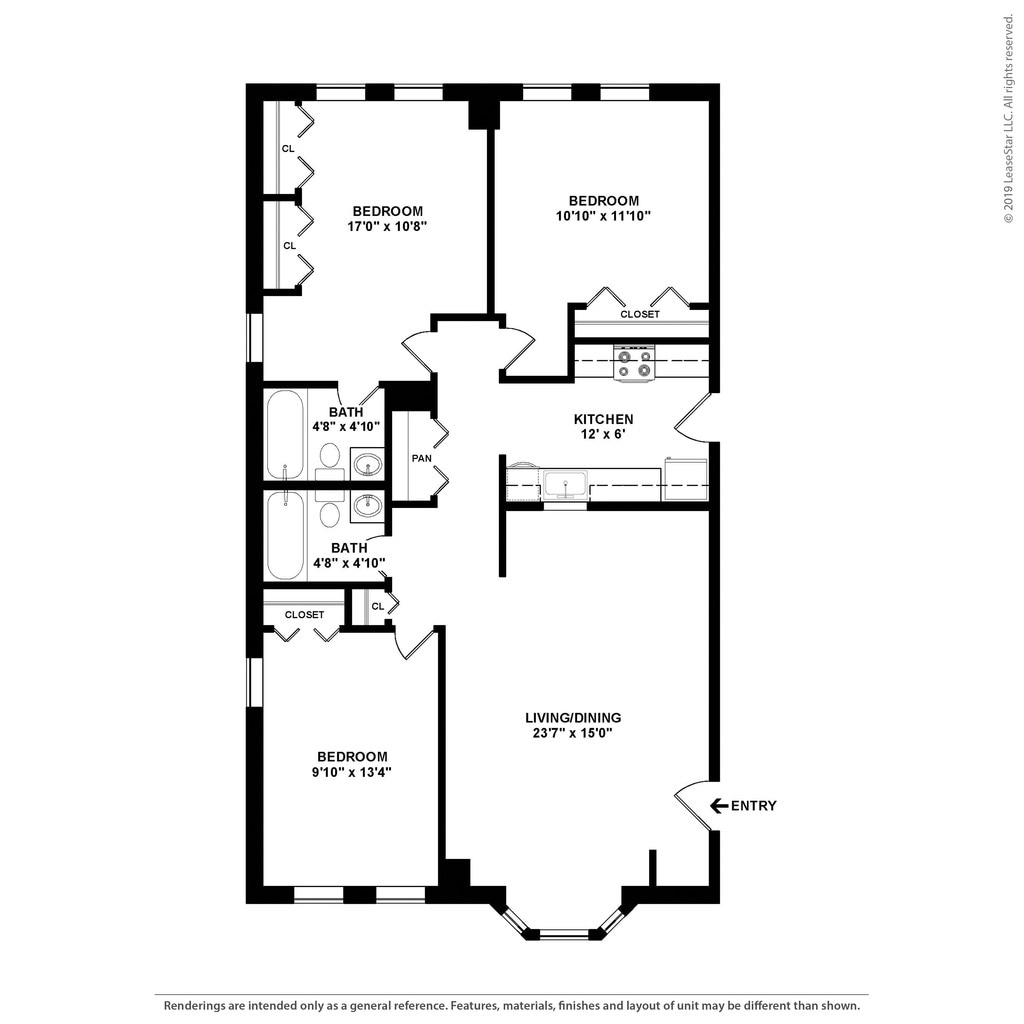 Three Bedroom/ Two Bath Flat - Floorplan 2 ![]()