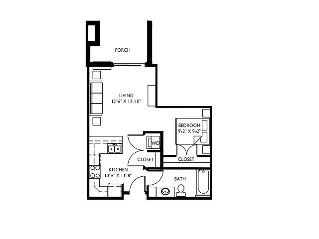 Apartment Unit: 305Apartment Model: F$1,406Studio, 1 Bath, 578 sq ftAvailable NowFloorplan E