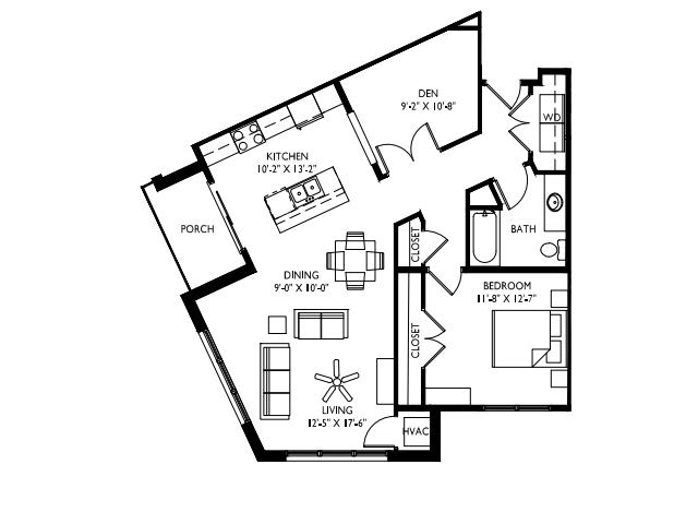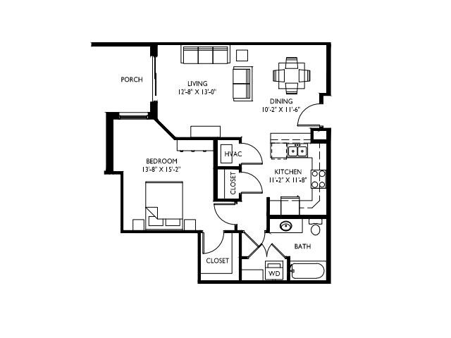 D - Floorplan 2 Apartment Unit: 411Apartment Model: D$1,6441 Bedroom, 1 Bath, 829 sq ftAvailable NowFloorplan H