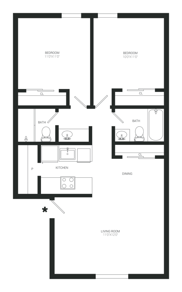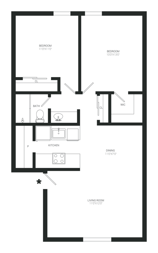Spruce - Floorplan 10 Apartment Unit: 0110Apartment Model: Spruce$9991 Bedroom, 1 Bath, 555 sq ftAvailable January 1, 2026Floorplan Oak