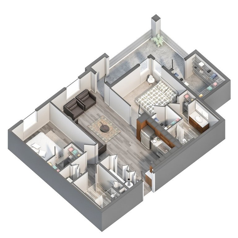 2 Beds, 2 Baths, 939-970 sq ftModel Gallery