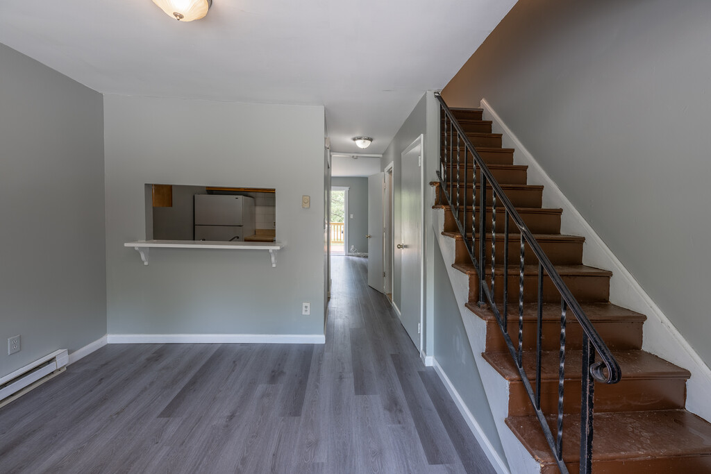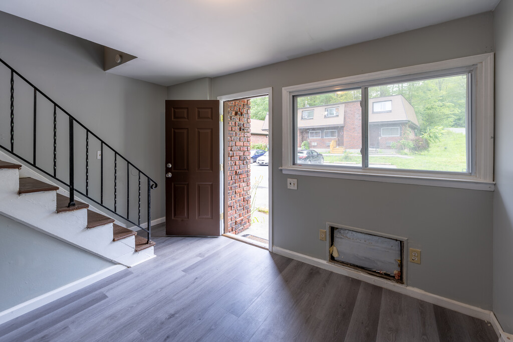 Partridge Gardens Townhouses 29 Partridge Hill Road, Hyde Park, NY 12538 2 Bedroom Apartments rent plus utilities. 1 Bedroom Apartment may also be available, rent plus utilities. Studio Apartment may also be available $1,100 plus utilities, has 1 big bedroom/ living room, and a separate kitchen, and full bath. Townhouses in quiet, country setting just off Rt 9G near North Park and FDR Schools. Complex has maintenance staff. Recently updated, painted, etc. Special Renters Insurance is requested. Off street parking, lot well lit. Two bedroom is 800+ sq ft. on two floors plus and unfinished basement. Sliding glass doors to deck. New windows. Some New kitchens. Basement with washer/dryer hookups, place for storage! 1st floor has Living room, kitchen, dining room, 1½ bath. 2nd floor has 2 bedrooms, one full bathroom, a/c unit and multiple closets. Renter pays heat, hot water and lights. Water and sewer included. Recycling and Refuse Dumpster provided. Certain pets allowed for a fee. Initial Pet fee and monthly pet fee applies for approved pets. Pictures may differ from ones shown. Thank you