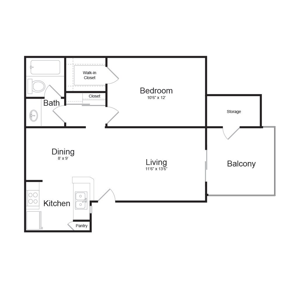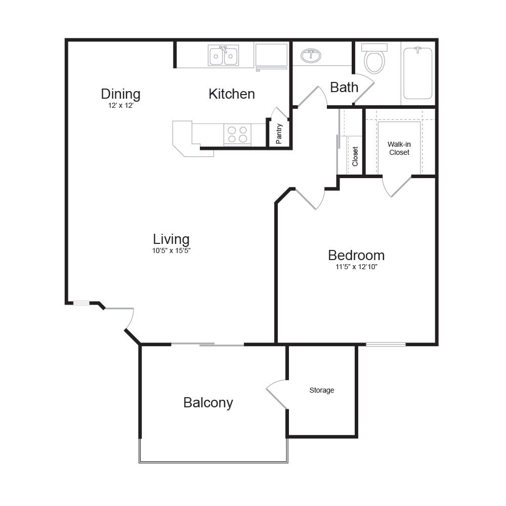 1 Bed, 1 Bath, 580 sq ftAvailable NowModel Gallery