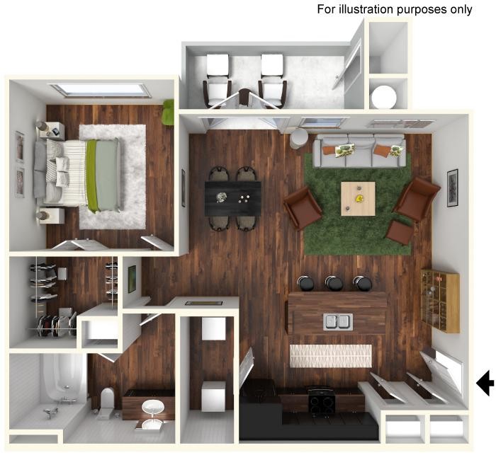 1 Bed, 1 Bath, 730 sq ftAvailable NowModel Gallery