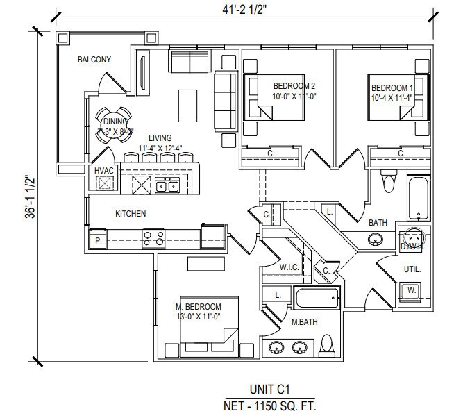 Apartment Model: A1From $1,4741 Bedroom, 1 Bath, 712 sq ftAvailable NowFloorplansPhotos![]()