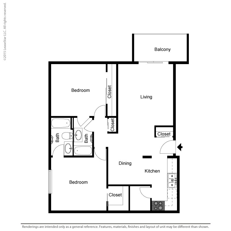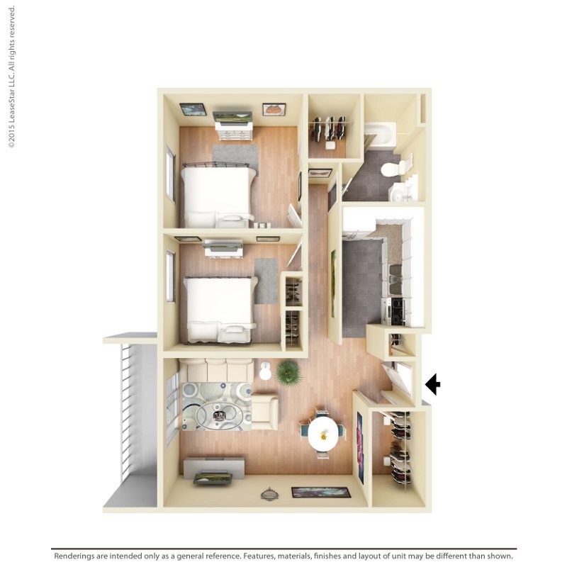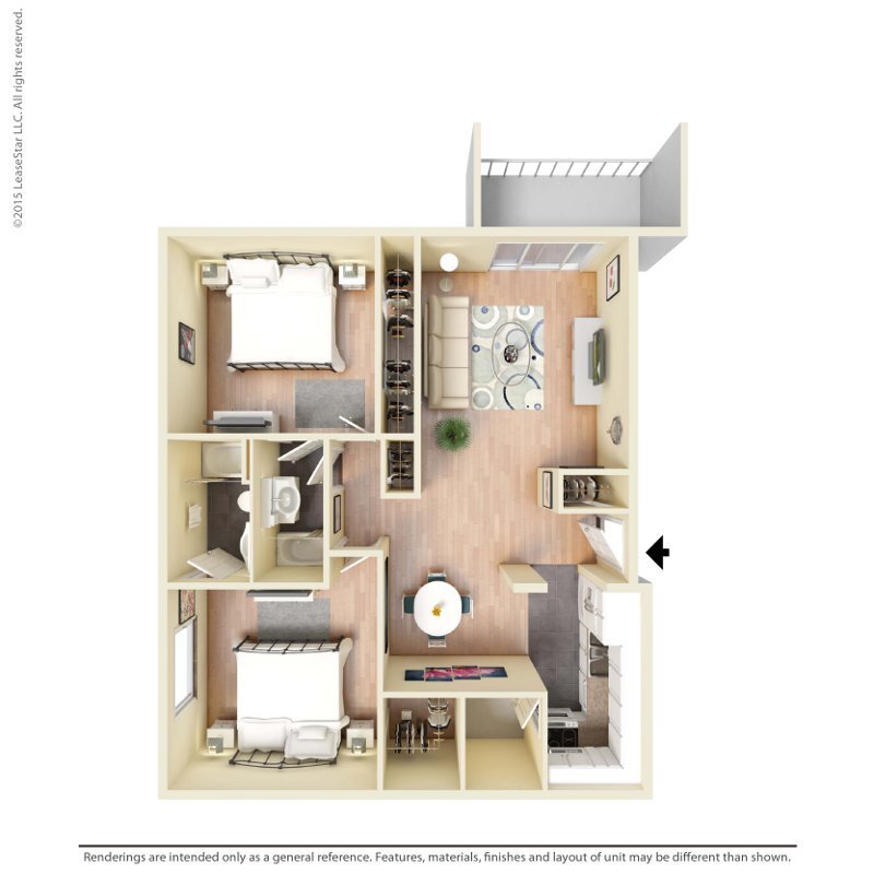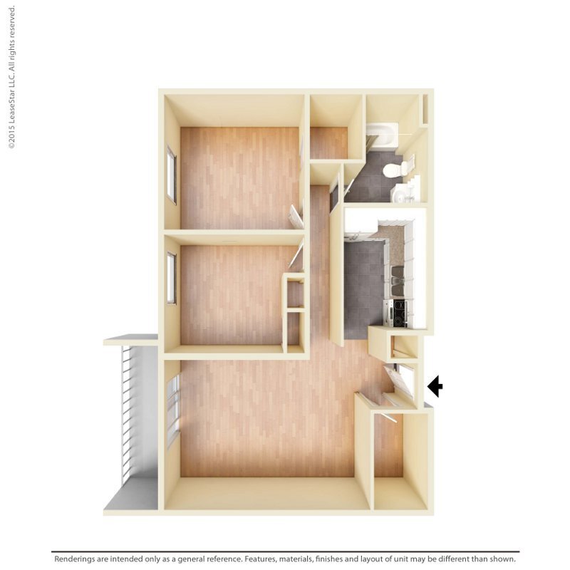 2 Beds, 1 Bath, 834-850 sq ftTotal Monthly PriceAvailable NowModel Gallery