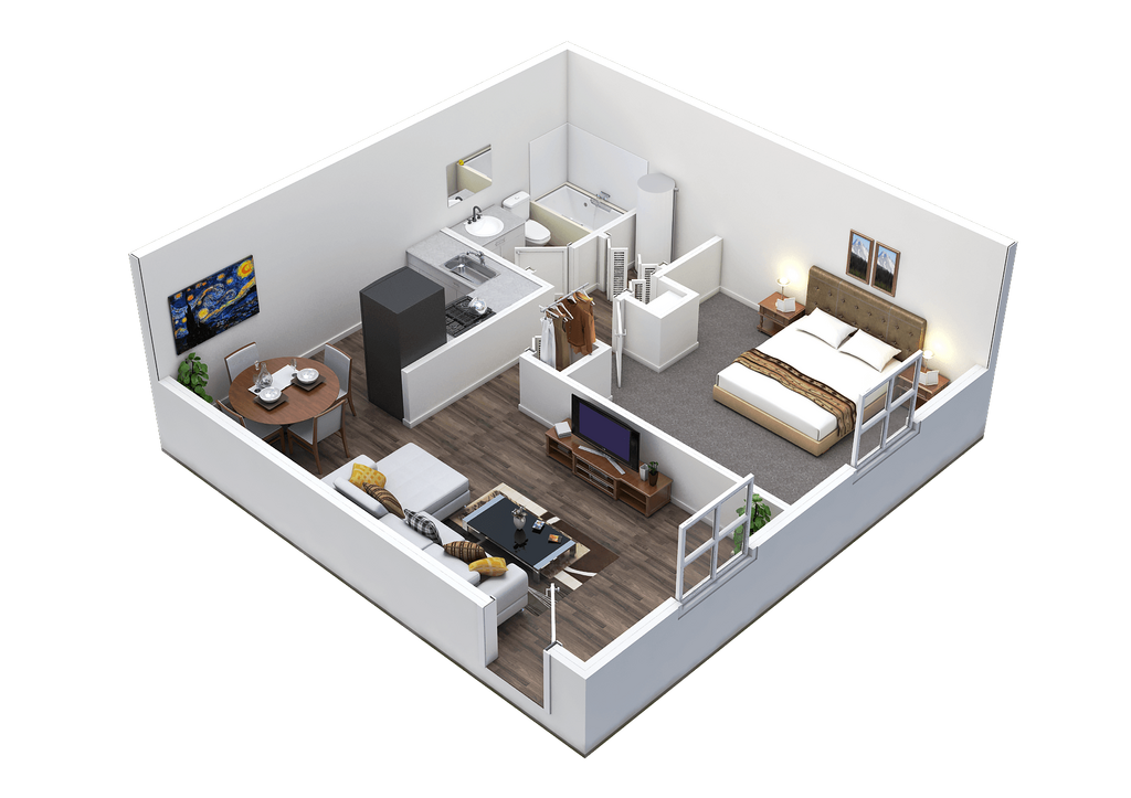 1 Bed, 1 Bath, 650 sq ftModel Gallery