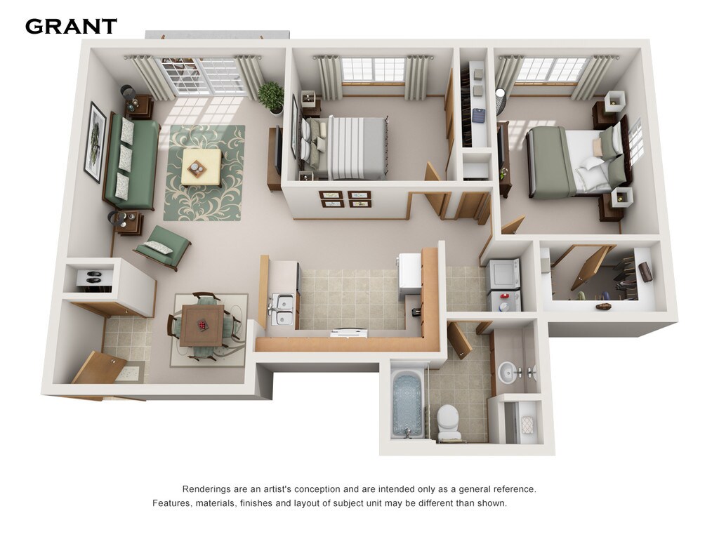 Apartment Model: Grant$9992 Bedroom, 1 Bath, 930 sq ftUnavailable![]()