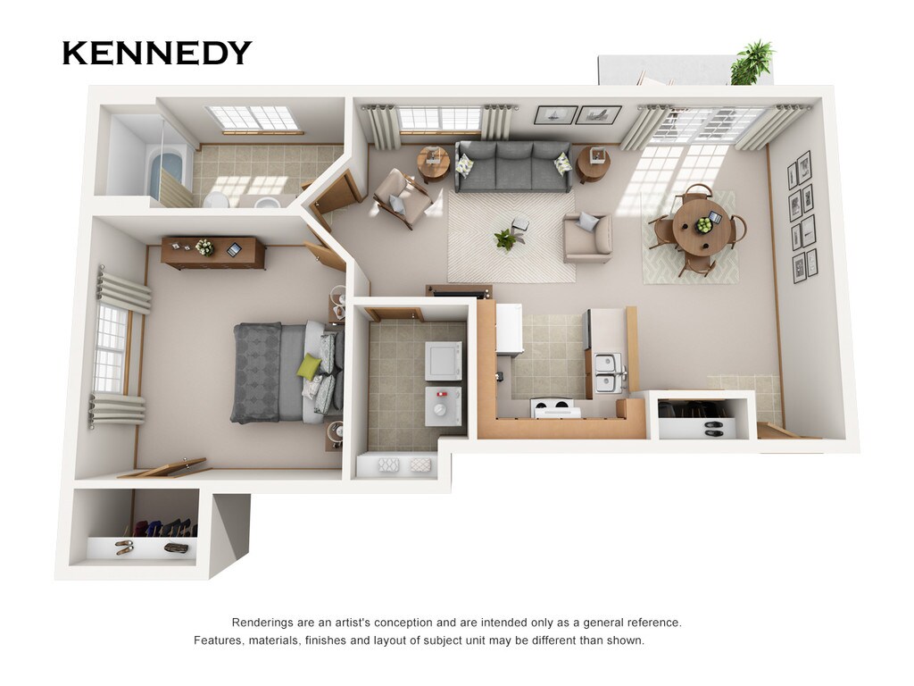 Apartment Model: Kennedy$9501 Bedroom, 1 Bath, 807 sq ftUnavailableFloorplansPhotos![]()