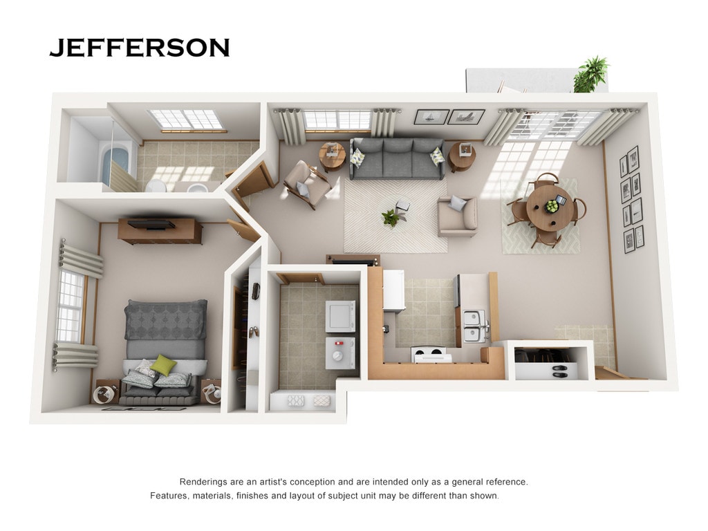 Apartment Model: Jefferson$9501 Bedroom, 1 Bath, 807 sq ftUnavailableFloorplansPhotos![]()