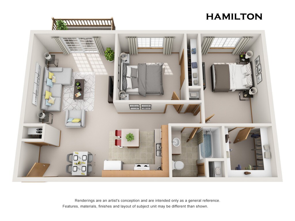 Apartment Model: Hamilton$9752 Bedroom, 1 Bath, 930 sq ftUnavailable![]()