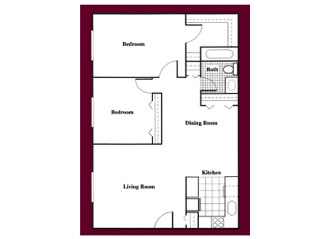 1 Bed 1 Bath - Floorplan 2 2 Bedrooms