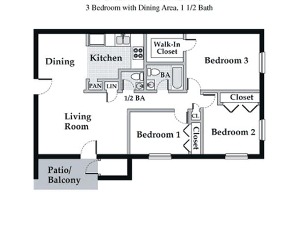 Apartment Model: 3 Bedroom$1,7003 Bedroom, 1.5 Bath, 1008 sq ftUnavailable3 Bedroom - Floorplan 1