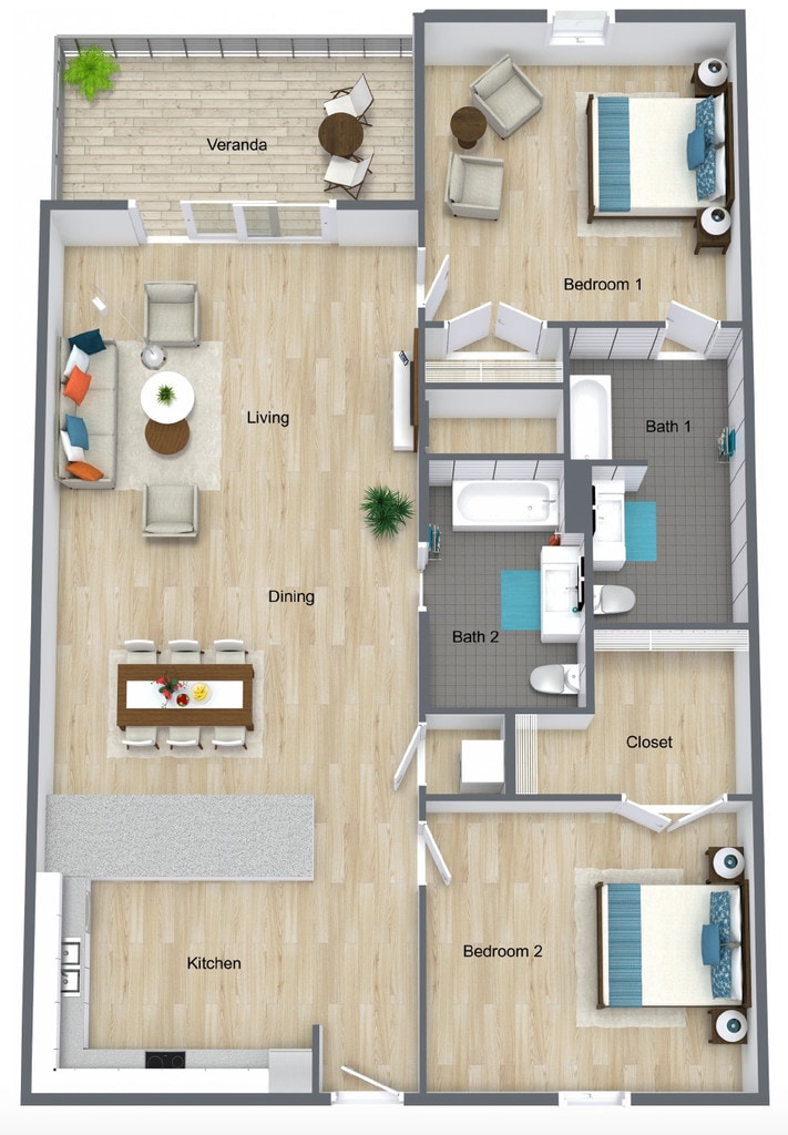 2 Beds, 2 Baths, 1040 sq ftAvailable NowModel Gallery