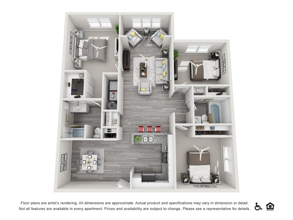 Apartment Model: RedbudFrom $1,2452 Bedroom, 2 Bath, 1188 sq ftAvailable NowFloor plans are artist's rendering. All dimensions are approximate. Actual product and specifications may vary in dimension or detail. Not all features are available in every rental home. Prices and availability are subject to change. Base rent is based on monthly frequency. Additional fees may apply, such as but not limited to package delivery, trash, water, amenities, etc. Deposits vary. Please see a representative for details.