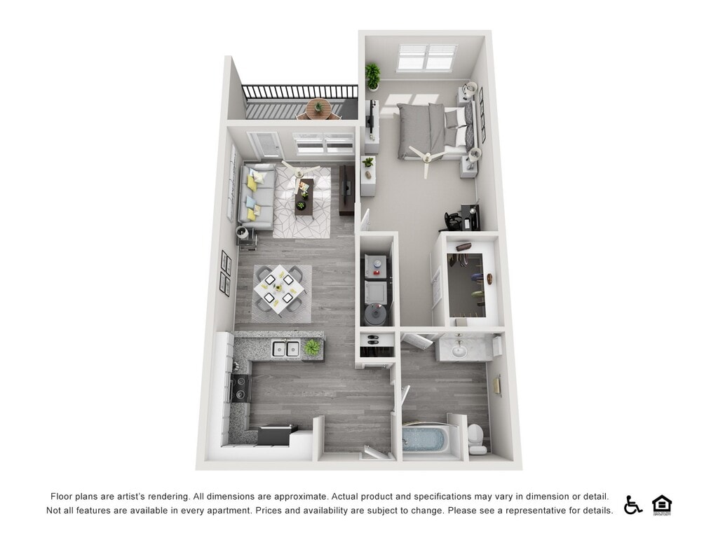 Dogwood - Floorplan 1 Floor plans are artist's rendering. All dimensions are approximate. Actual product and specifications may vary in dimension or detail. Not all features are available in every rental home. Prices and availability are subject to change. Base rent is based on monthly frequency. Additional fees may apply, such as but not limited to package delivery, trash, water, amenities, etc. Deposits vary. Please see a representative for details.