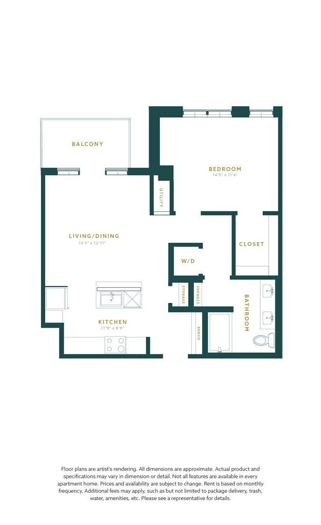 1 Bed, 1 Bath, 501 sq ftAvailable NowModel Gallery