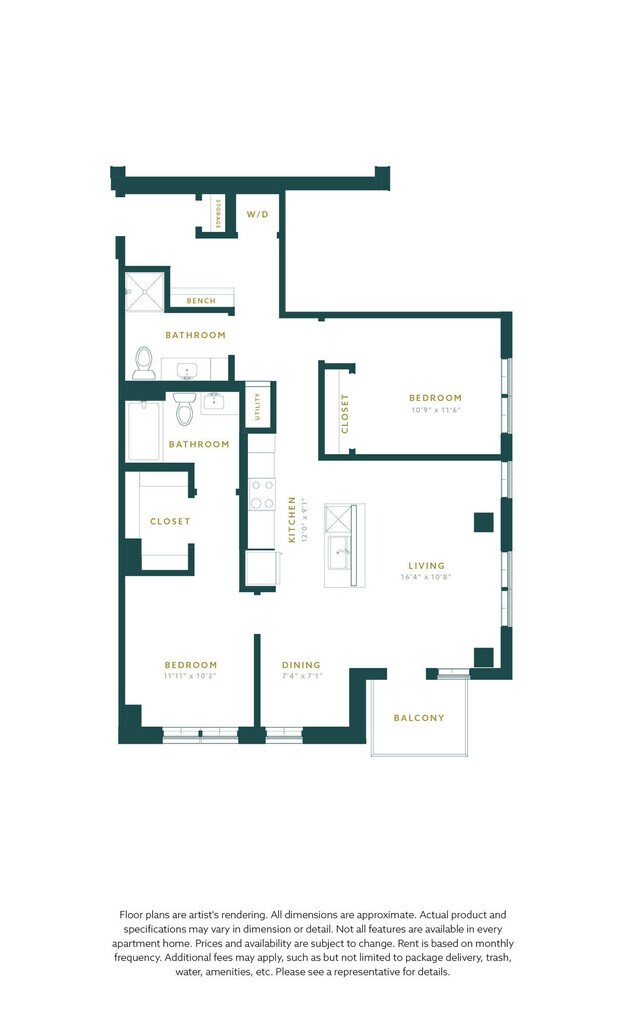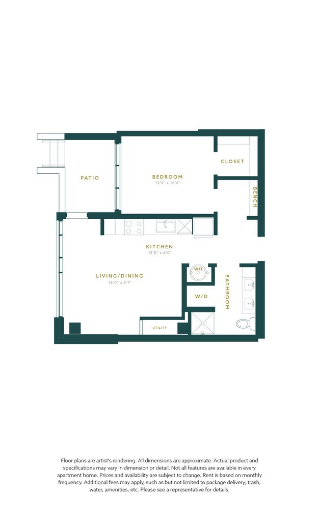 1 Bed, 1 Bath, 612 sq ftAvailable NowModel Gallery
