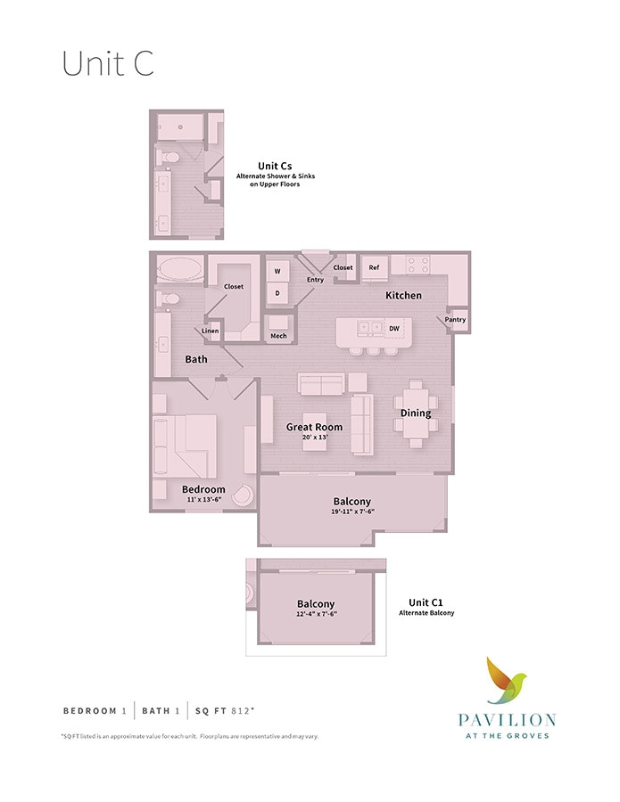 Studio to 3 Bedroom Apartments at Pavilion at The Groves currently range from $1,215 to $2,460