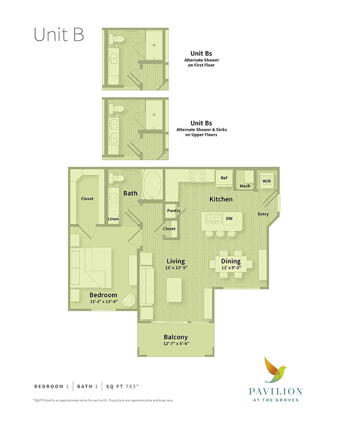 Pavilion at The Groves offers Studio to 3 Bedroom apartments starting from $1,215 and having 556–1,734 sq ft. Here is the current pricing and availability: