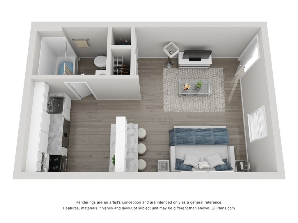 Studio, 1 Bath, 336 sq ftAvailable NowModel Gallery
