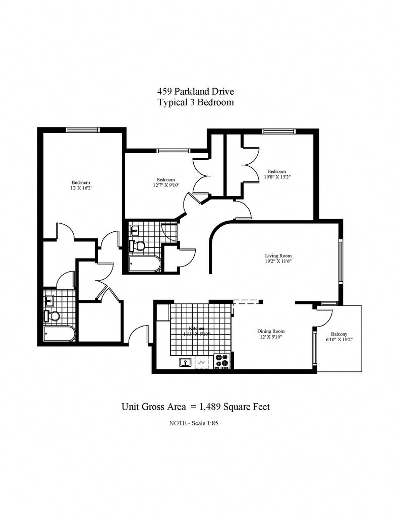 Apartment Model: Three Bedroom3 Bedroom, 2 Bath, 1489 sq ftUnavailableThree Bedroom - Floorplan 1