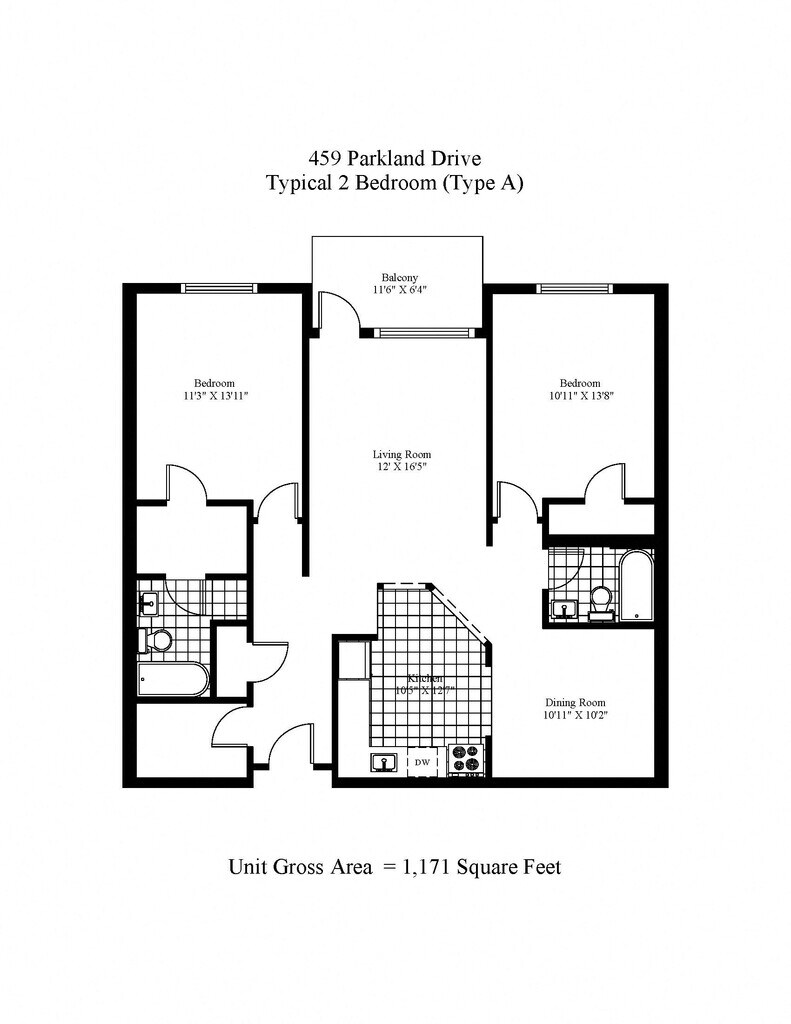 Apartment Model: Two Bedroom2 Bedroom, 1 Bath, 1171 sq ftUnavailableTwo Bedroom - Floorplan 1 3 Bedrooms