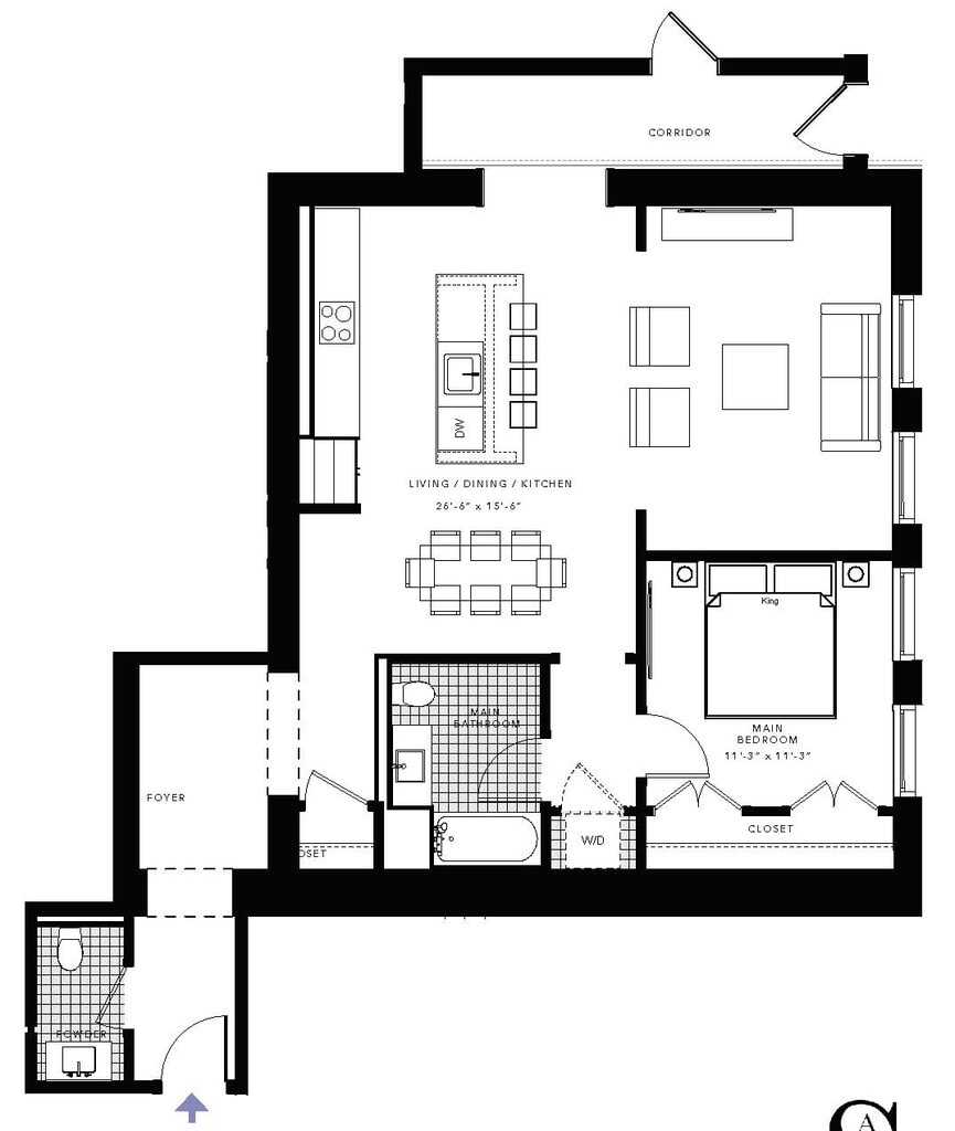 1 Bed, 1.5 Baths, 878 sq ftModel Gallery