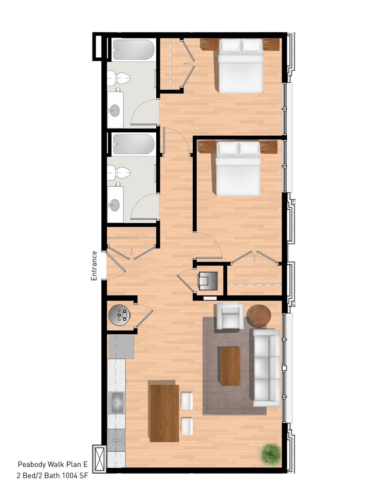 Peabody Walk Lofts offers Studio to 2 Bedroom apartments starting from $1,700 and having 412–1,004 sq ft. Here is the current pricing and availability: