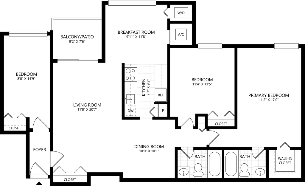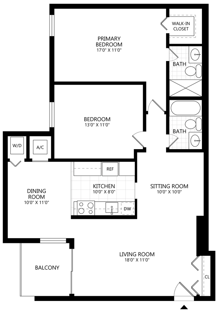 1 Bed/1 Bath-A2 - Floorplan 2 Bedrooms