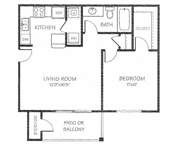 Apartment Model: 1A One BedroomFrom $1,1591 Bedroom, 1 Bath, 641 sq ftAvailable Now![]()