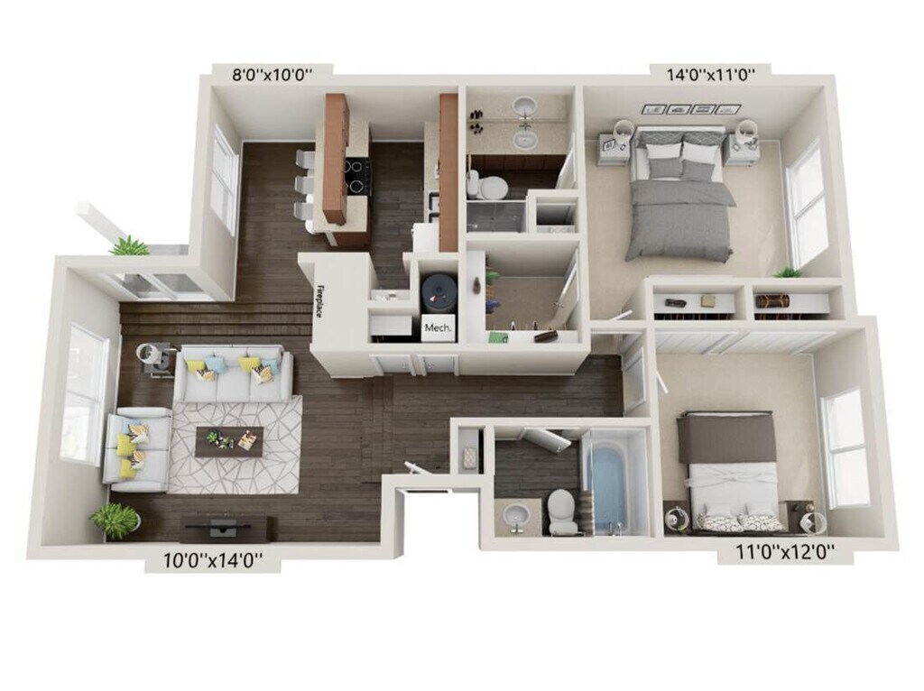 2 Beds, 2 Baths, 1016 sq ftAvailable August 15, 2026Largest 2 BedroomThis is the largest 2 Bedroom at this PropertyModel Gallery