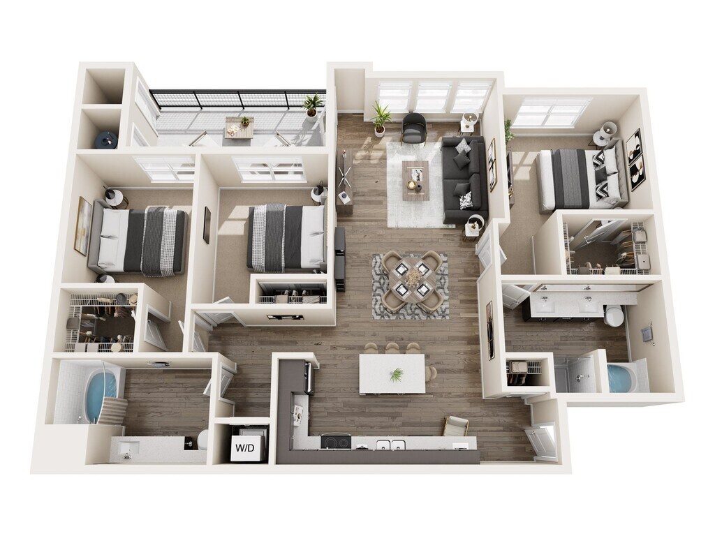 1 Bed, 1 Bath, 908-1156 sq ftAvailable NowLargest 1 BedroomThis is the largest 1 Bedroom at this PropertyModel Gallery