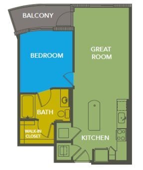Studio, 1 Bath, 569 sq ftAvailable NowModel Gallery