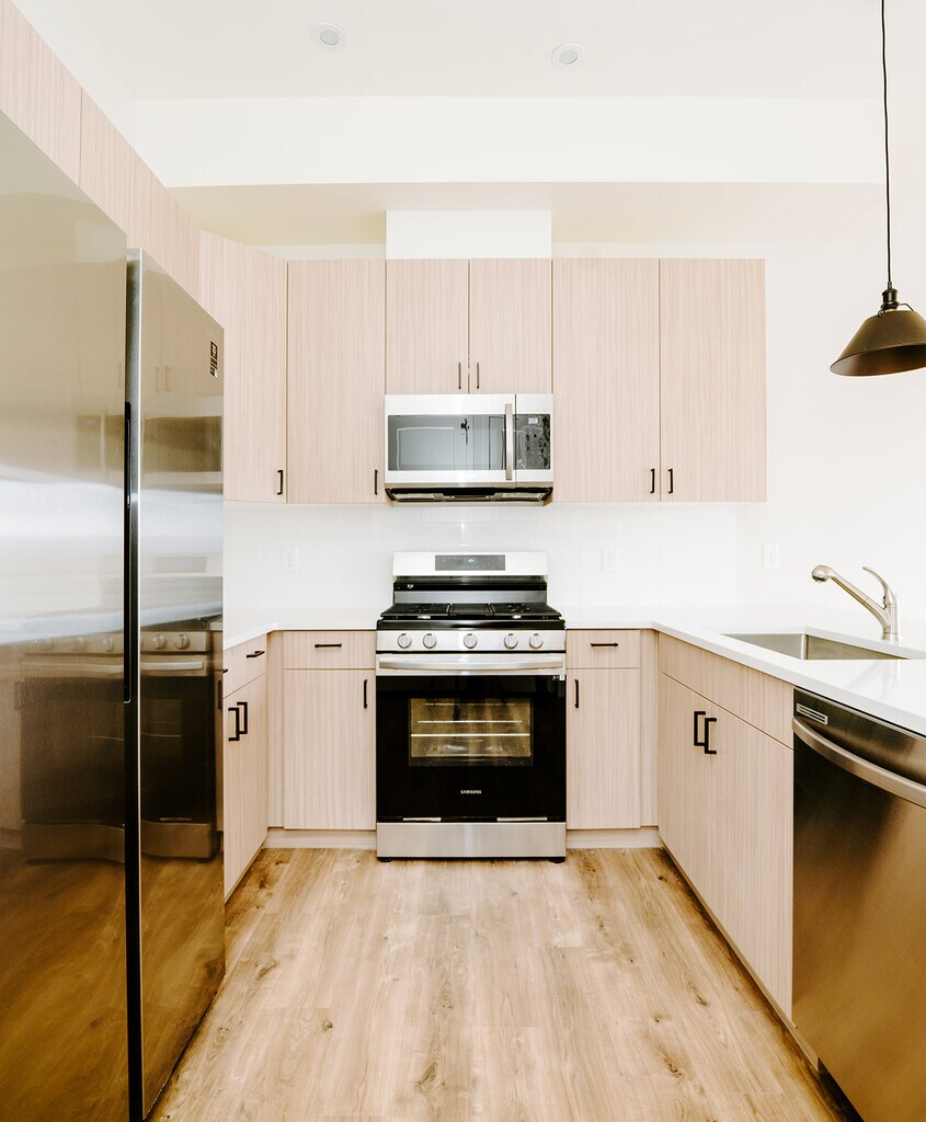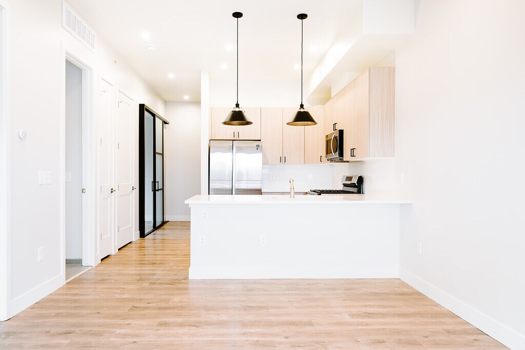 Pearl Flats is a new development in West Washington Park, completed in December 2021. This beautiful apartment building features 27 modern one- and two-bedroom units, high-end interior and exterior finishes, secure building and unit entries using the Latch system, Nest heating and cooling systems, garage parking and personal locker storage, private patios large windows, ample natural light, bike storage, and in-unit washer and dryers.