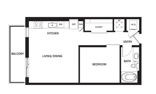 A03 - Floorplan 1 Apartment Unit: 825Apartment Model: A03From $1,350Studio, 1 Bath, 587 sq ftAvailable December 22, 2025Floorplan A01