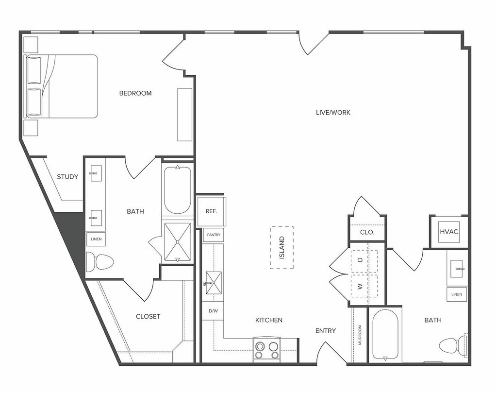 S2 - Floorplan 1 Apartment Unit: 1-516Apartment Model: S2$1,600Studio, 1 Bath, 469 sq ftAvailable Now1 Bedroom
