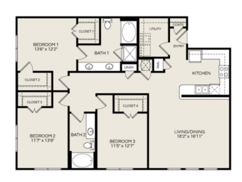 1 Bed, 1 Bath, 860 sq ftAvailable January 11, 2026Largest 1 BedroomThis is the largest 1 Bedroom at this PropertyModel Gallery