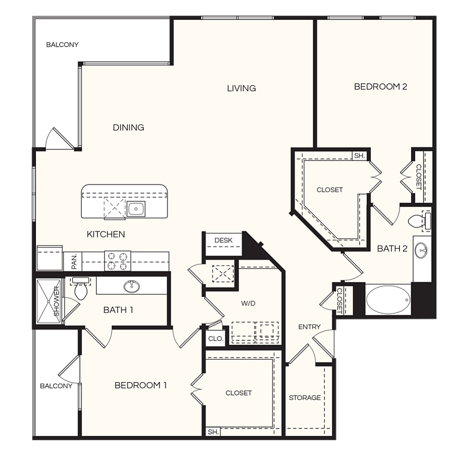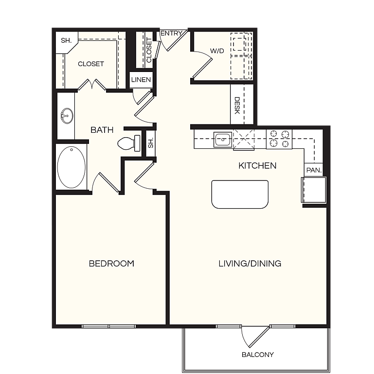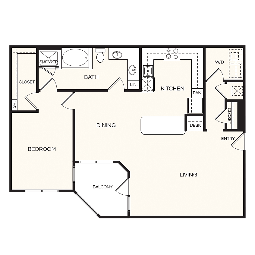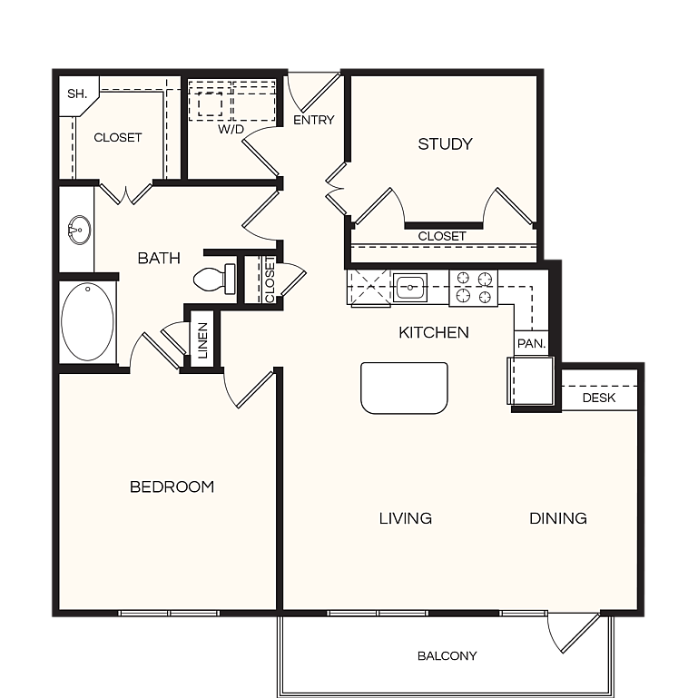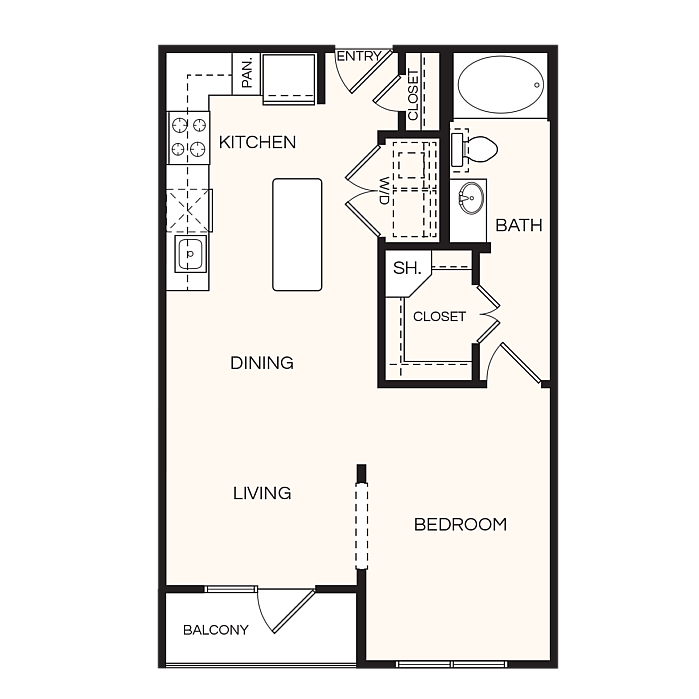 Studio, 1 Bath, 612 sq ftAvailable NowModel Gallery