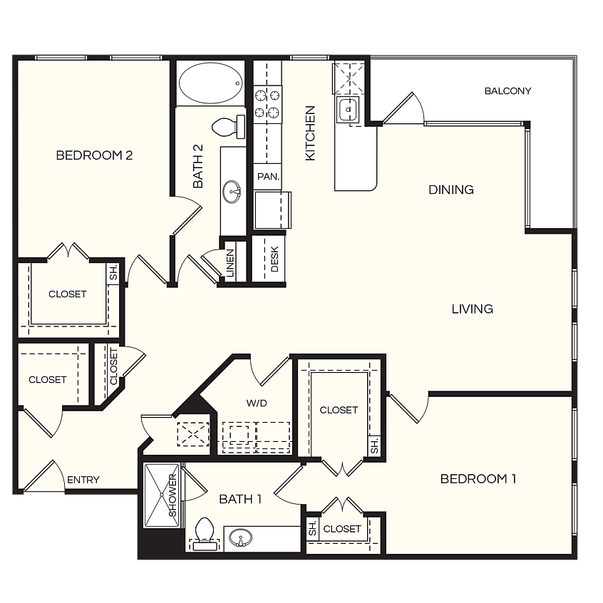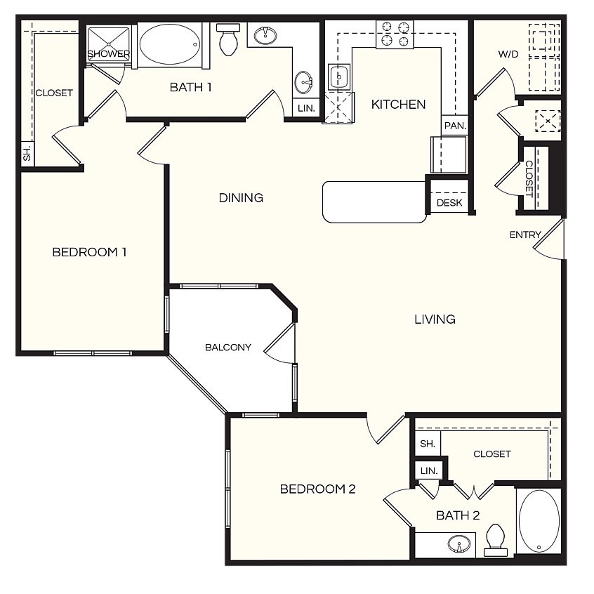 1 Bed, 1 Bath, 739 sq ftAvailable NowModel Gallery