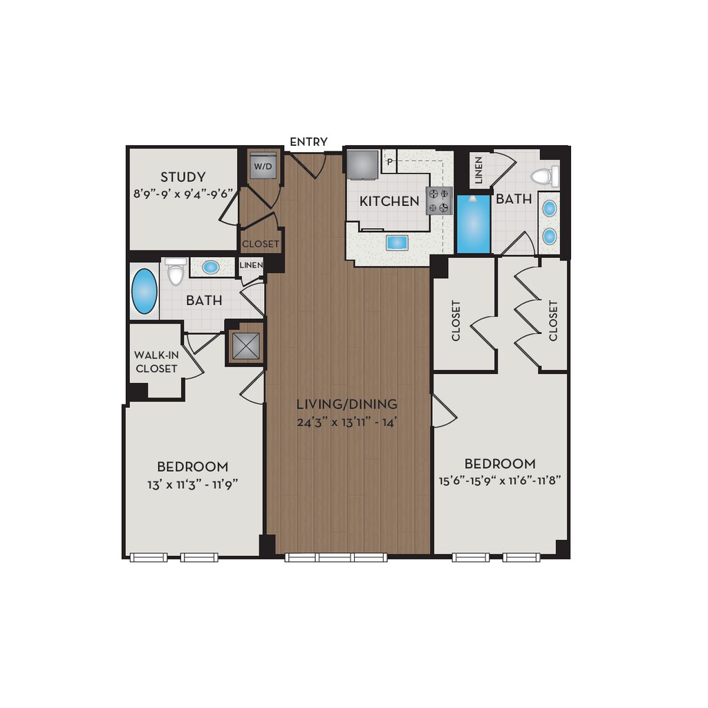 Apartment Unit: 530Apartment Model: A7D.1$2,8881 Bedroom, 1 Bath, 897 sq ftAvailable May 16, 2026Floorplan A1