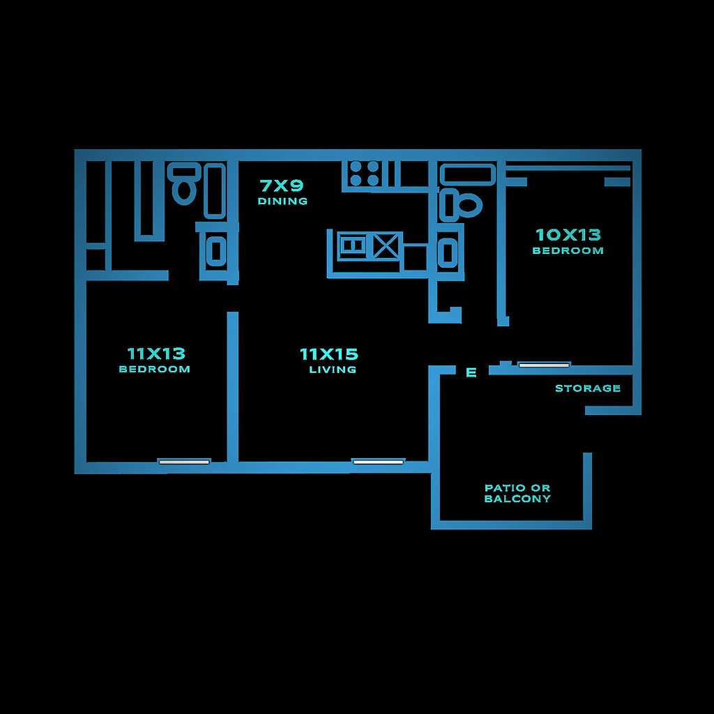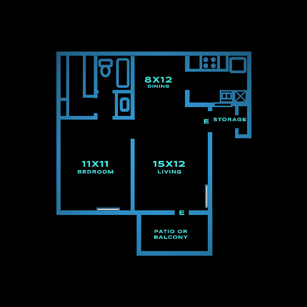 Apartment Model: BFrom $7951 Bedroom, 1 Bath, 561 sq ftAvailable NowFloorplansPhotos![]()