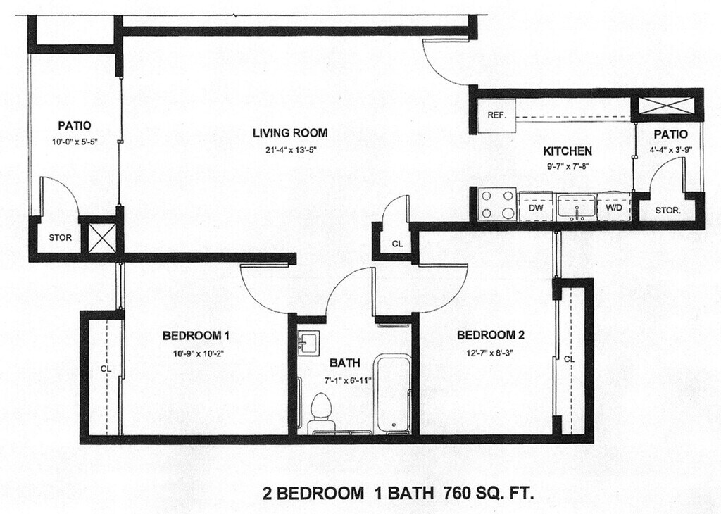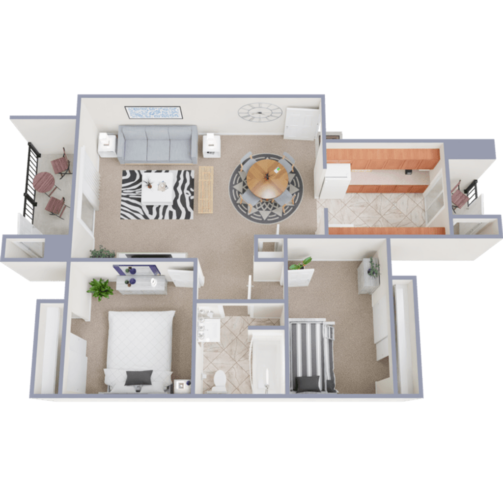 2 Beds, 1 Bath, 760 sq ftAvailable NowModel Gallery