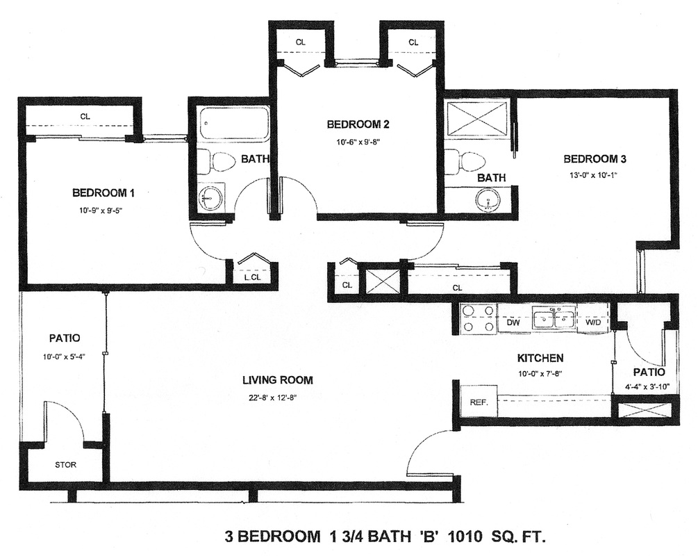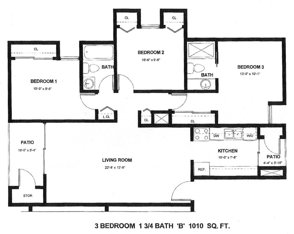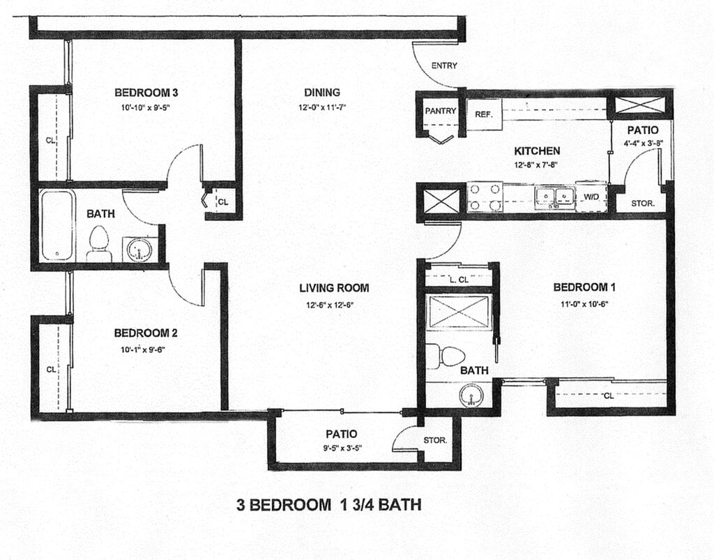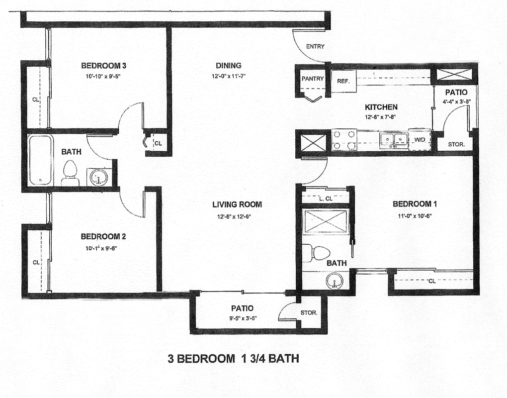 Three Bedroom Two Bath - Downstairs Unit - Pebble Creek Apartments