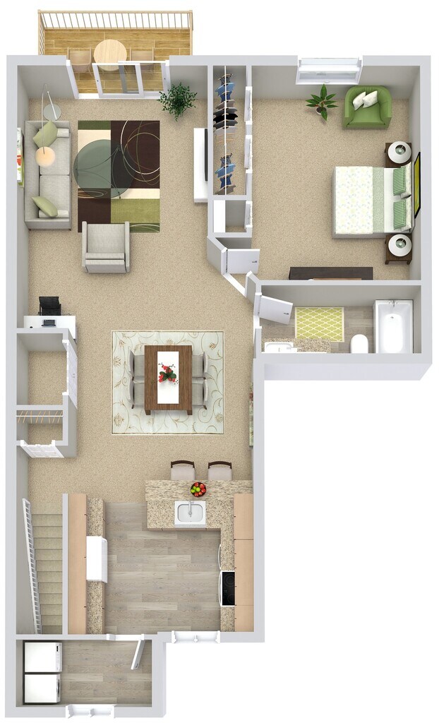 Apartment Model: 1 Bed | 1 Bath UpperFrom $1,2931 Bedroom, 1 Bath, 865 sq ftAvailable Now![]()