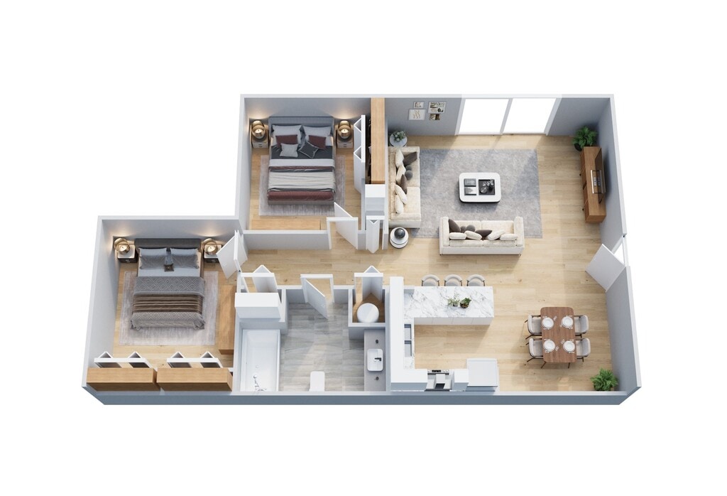 2 Beds, 1 Bath, 817 sq ftModel Gallery