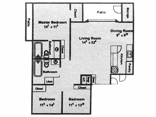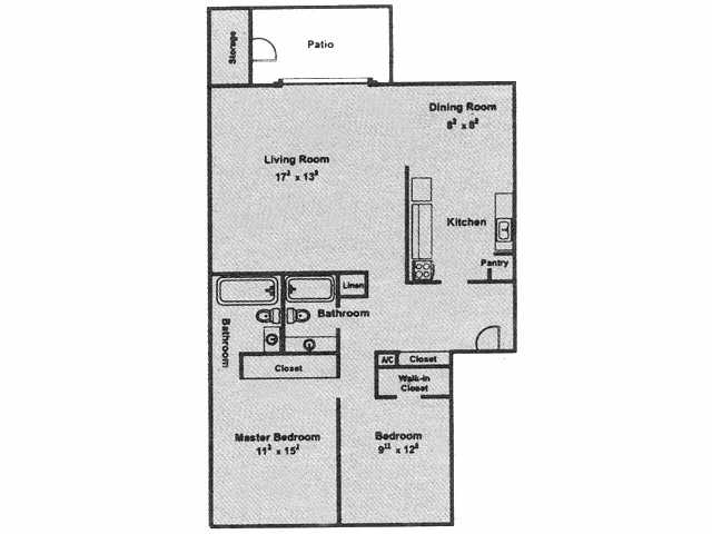 Apartment Model: 2x2 12502 Bedroom, 2 Bath, 1250 sq ftUnavailable2x2 1250 - Floorplan 1 3 Bedrooms